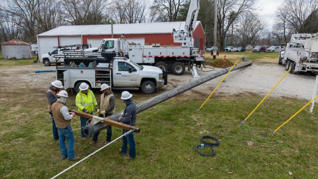 Die Mastspende von Hoosier Energy hilft der Freiwilligen Feuerwehr Union, ihrer Wiedereröffnung einen Schritt nÀher zu kommen.