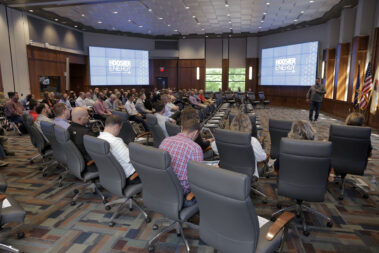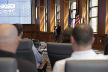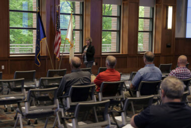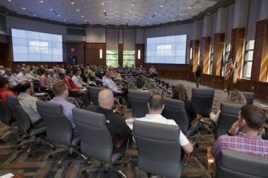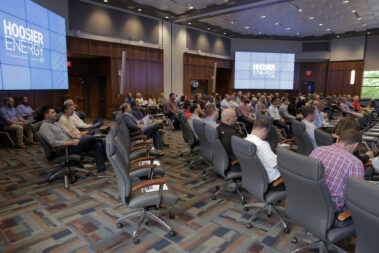 Durante las reuniones en Spencer y la sede, la directora ejecutiva de Hoosier Energy, Donna Walker, habló sobre la misión, la visión y las prioridades estratégicas de la empresa, así como sobre los desafíos económicos y de red que enfrenta la industria de la energía. Walker y el personal superior también respondieron preguntas de los asistentes.