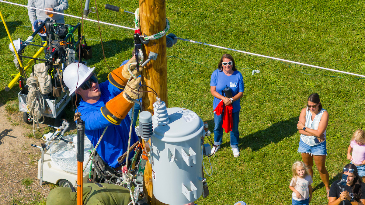 この2日間のイベントは、電力協同組合の線路作業員の技能と安全訓練を披露する場であり、作業員たちは電柱登り、負傷者の救助、結び目の形成、電線ハードウェアの交換などの競技で競い合いました。