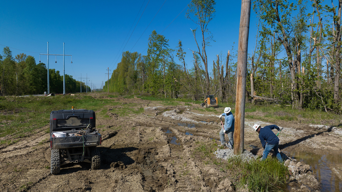 The Hoosier Energy crews started on the 69 kV stuff first – it’s more of a direct-to-consumer line going straight to distribution substations whereas the 345 kV line goes to primary substations and then another stop before it goes to lines that go to people’s homes.