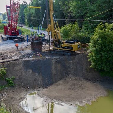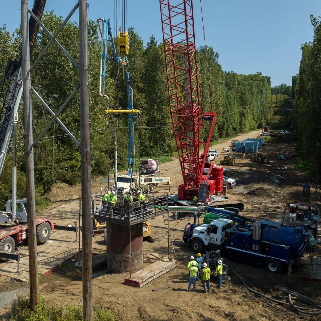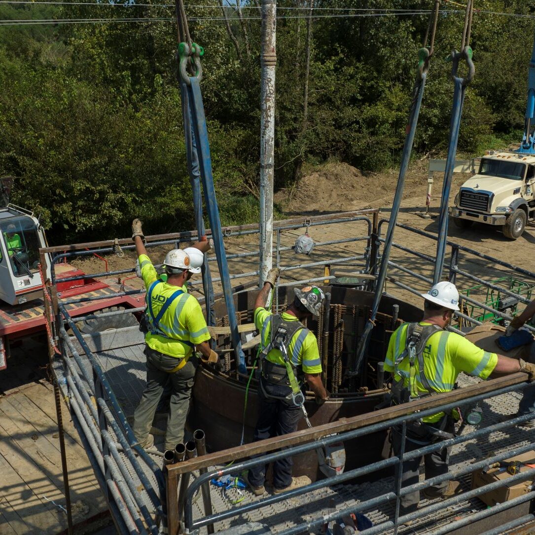 Over the next 10 weeks, the team indeed got the job done, installing all seven foundations – five on the west side of the river and two on the east side.