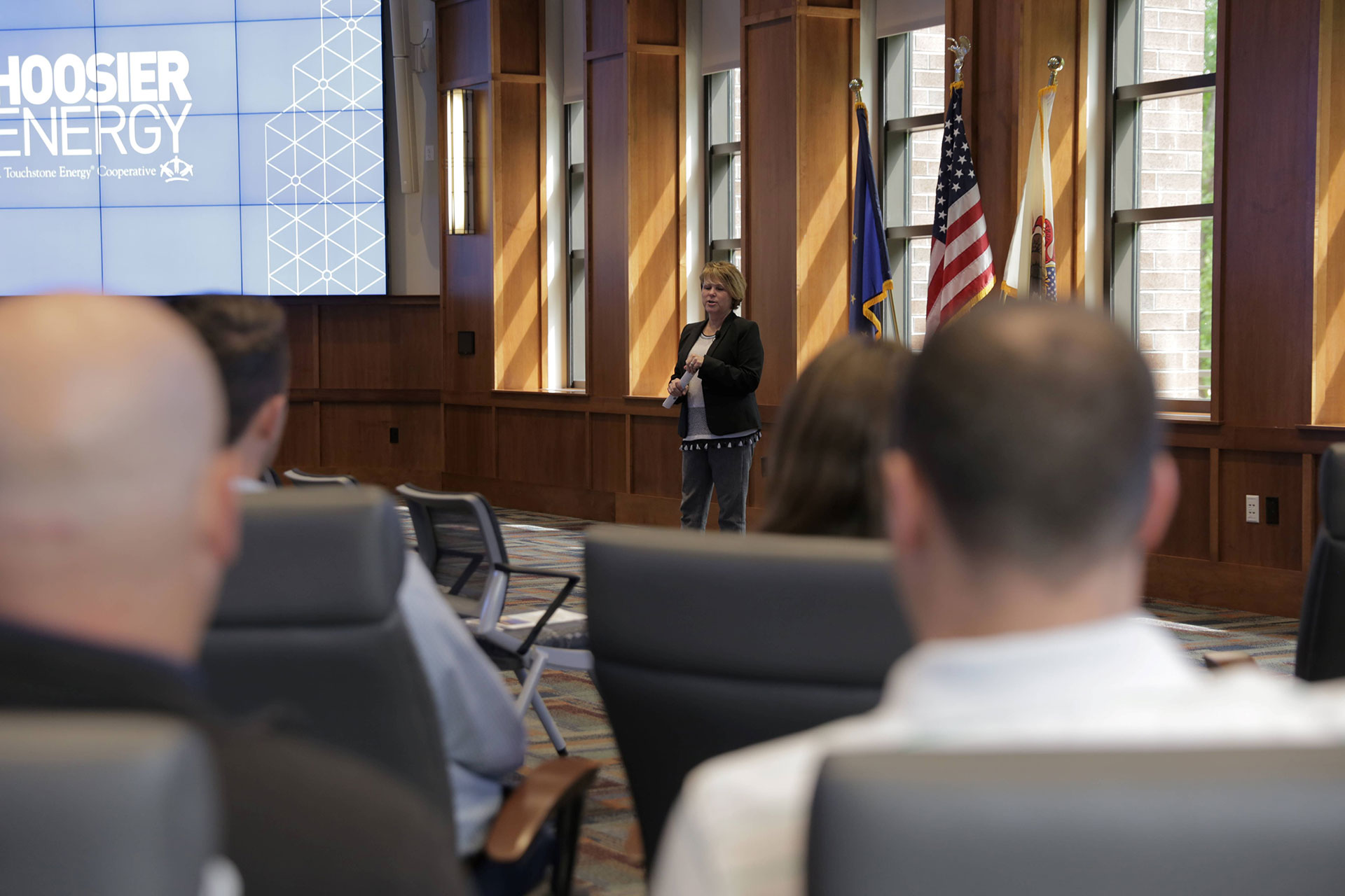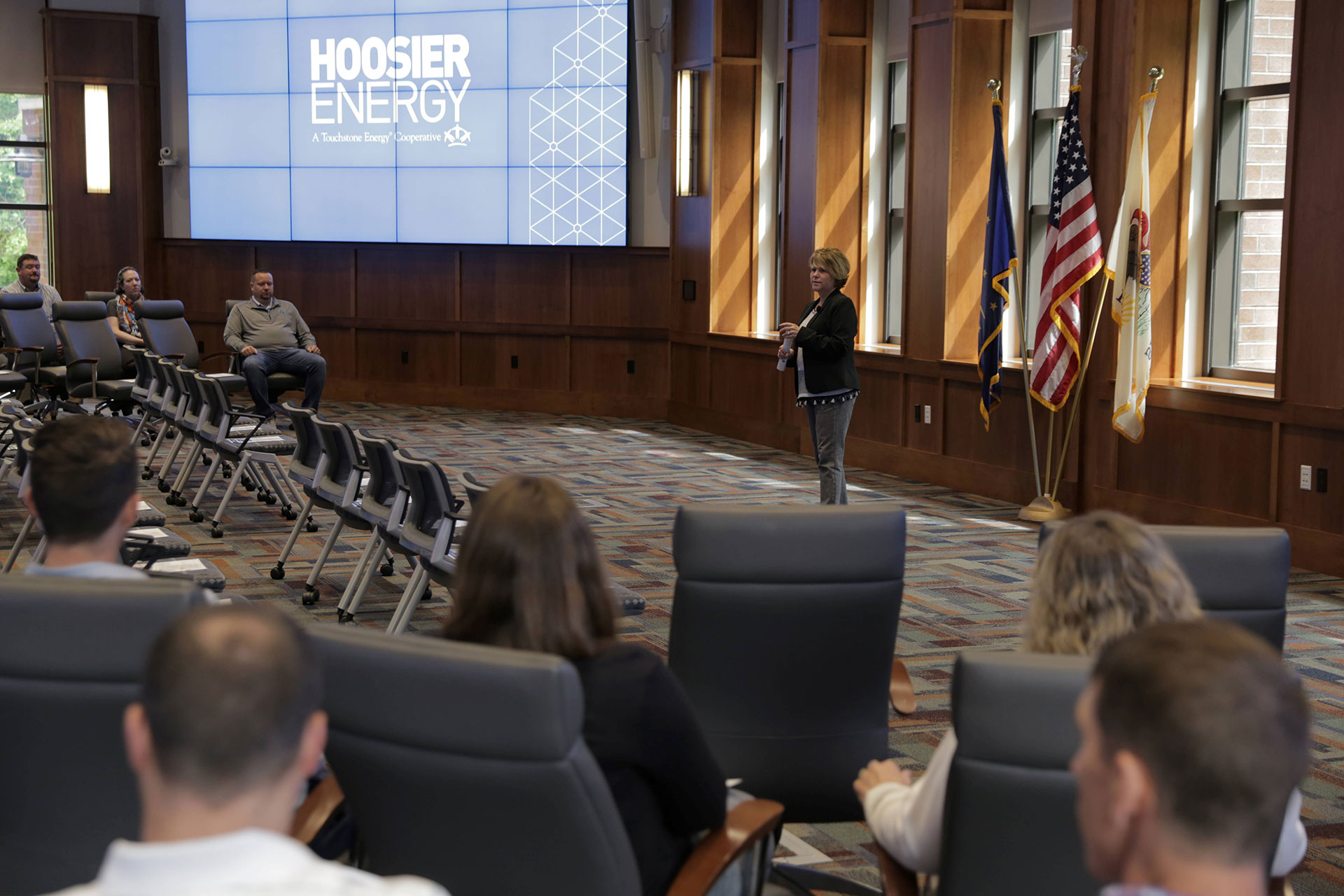 During the meetings at Spencer and HQ, Hoosier Energy CEO Donna Walker spoke about the company’s mission, vision and strategic priorities, as well as the economic and grid challenges facing the power industry. Walker and senior staff also took questions from those in attendance.