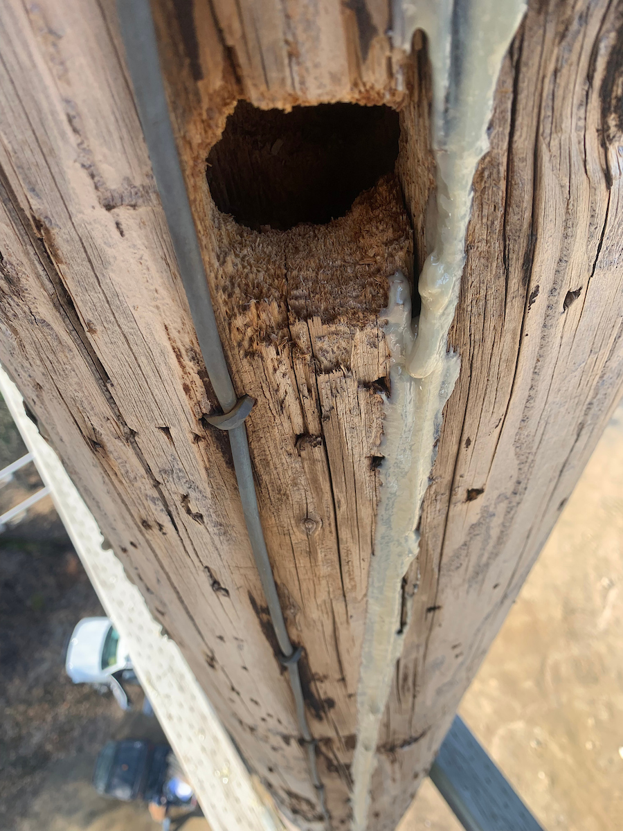 Aquele buraco foi cortesia de um pica-pau, o que não é um problema totalmente incomum.